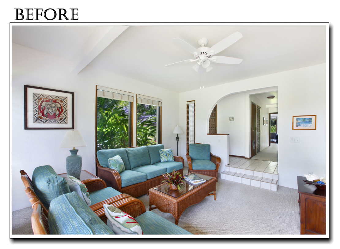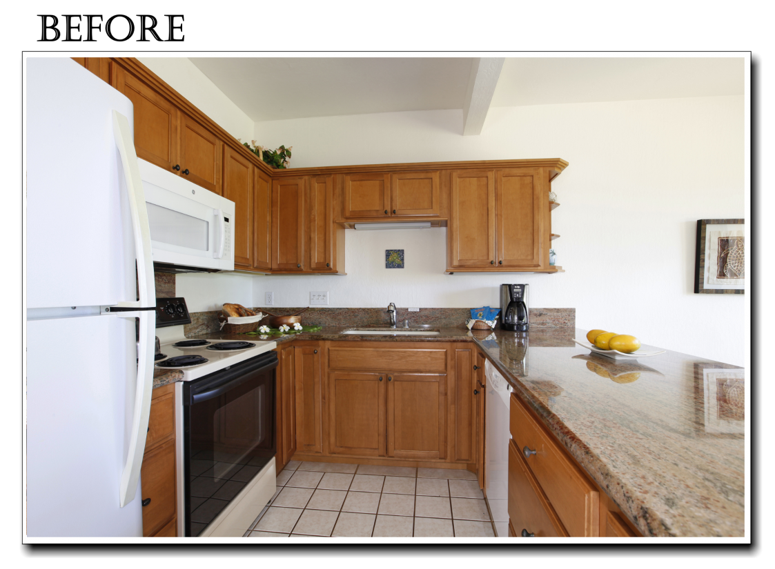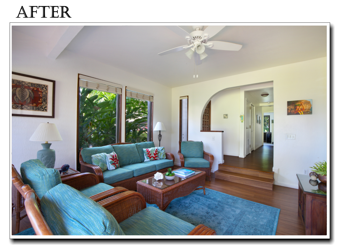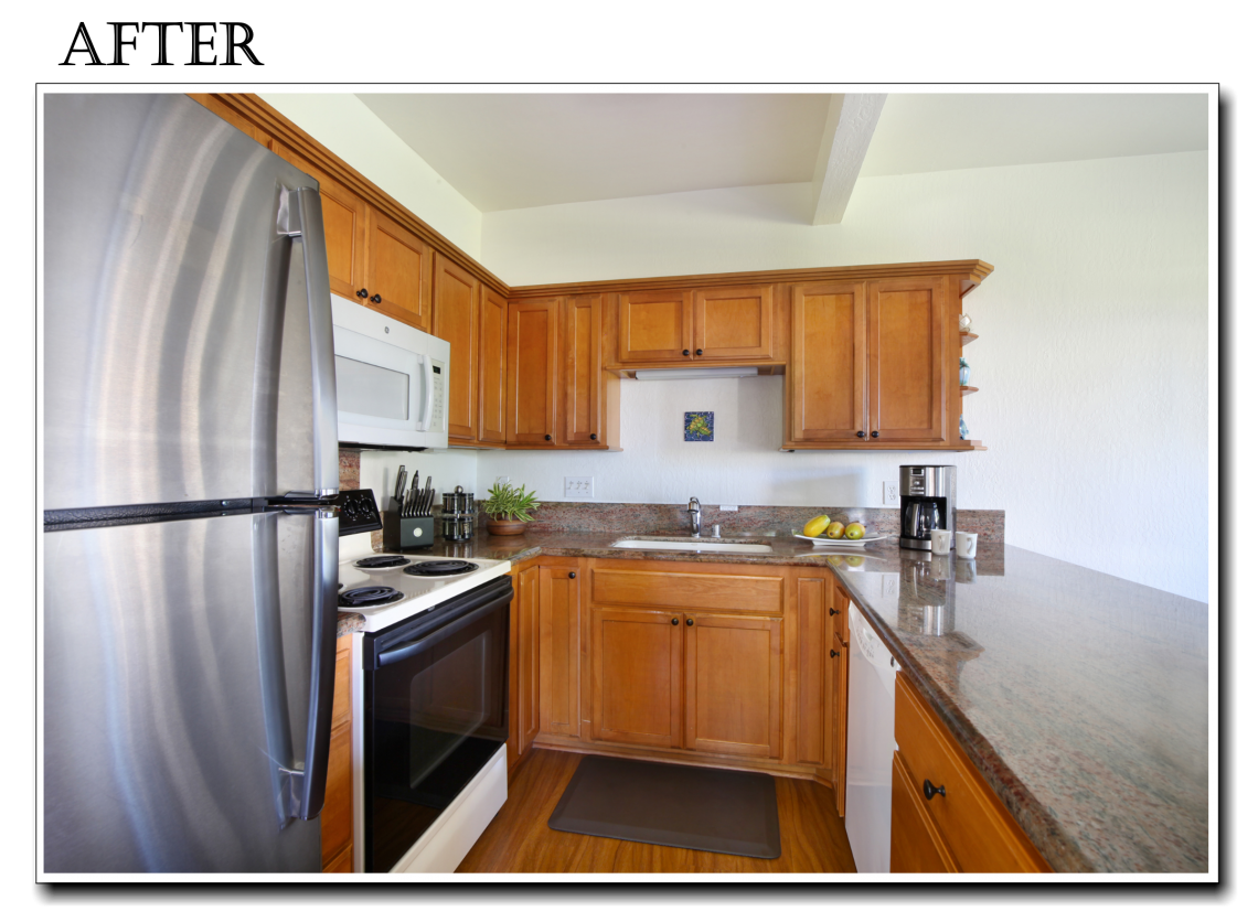 The tiles in the kitchen were removed and also replaced with wood flooring, which continues from the living room and hall way. A new, upgraded, stainless steel refridgerator has been installed. The well equipped kitchen at Kahala 713 is ready for any chef to show off their cooking skills!
