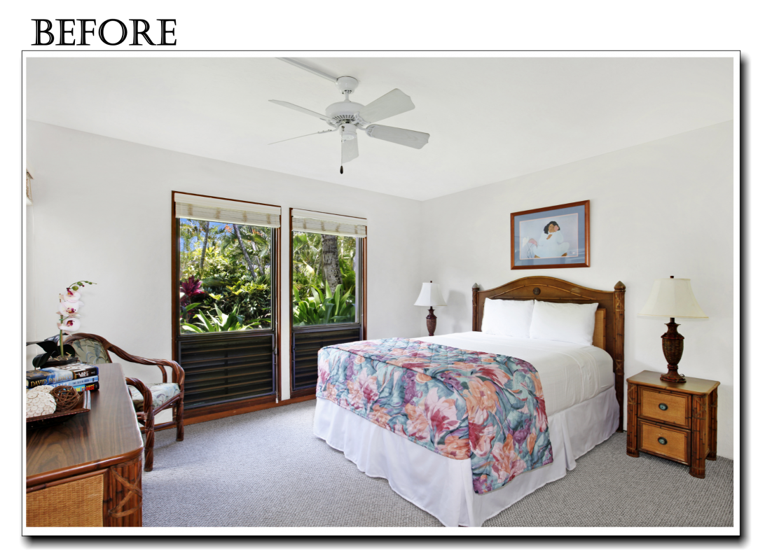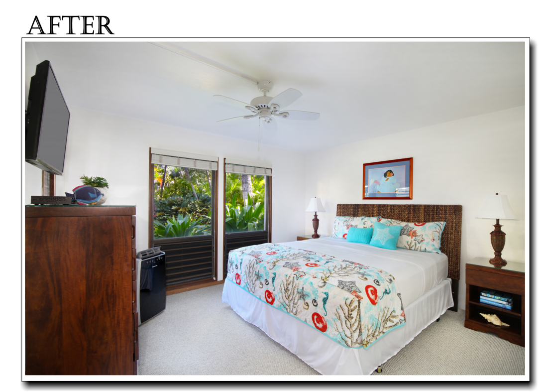The Master Bedroom at Kahala 713 received a huge update to include a larger, comfy cal-king bed, beautiful ocean inspired bedding, new bedrom furniture, and probably most notable, a brand new AC unit to keep guests nice and cool during the hot hawaiian nights. The upgrades will really enhance the guests rest and relaxation during their entire stay.